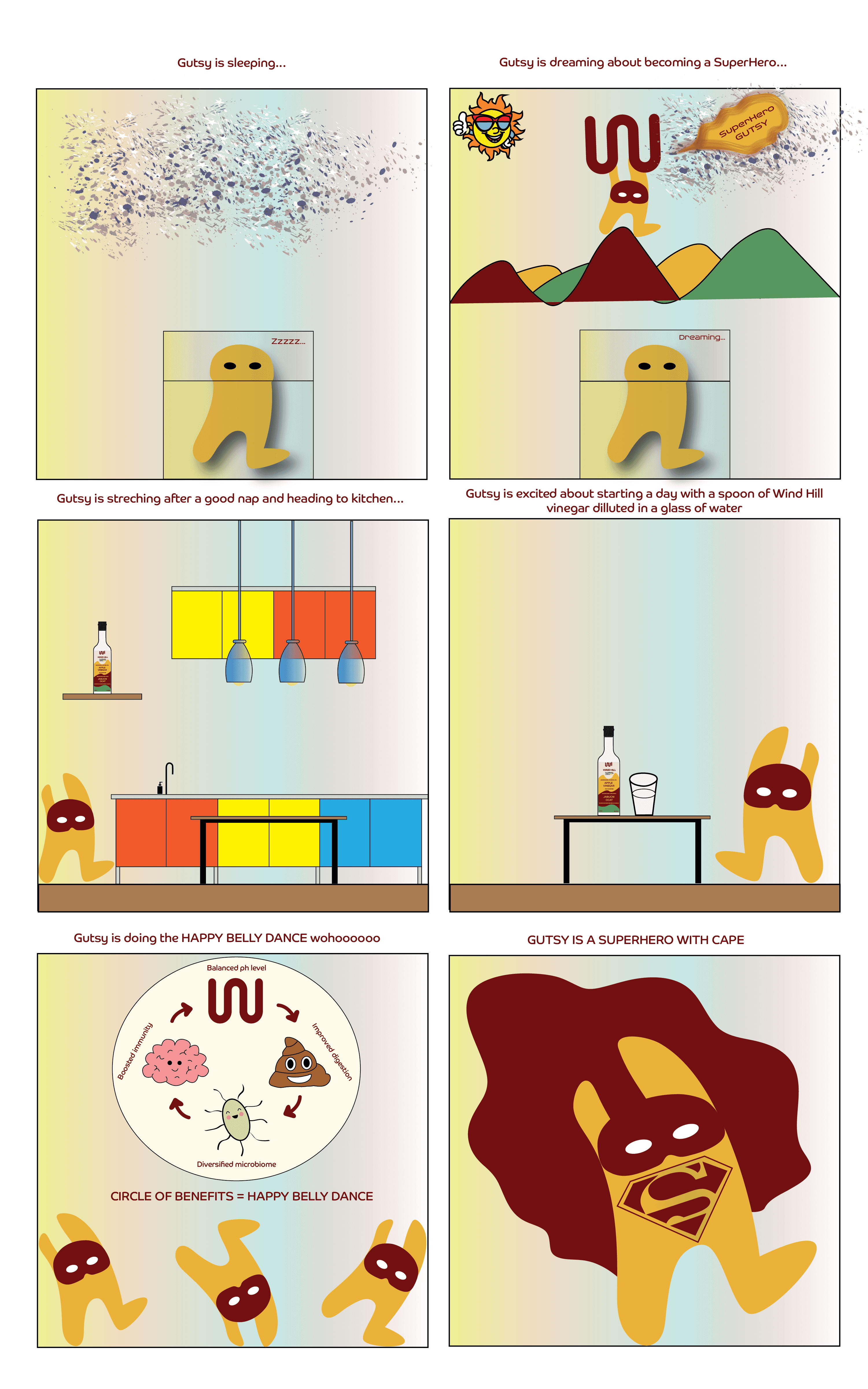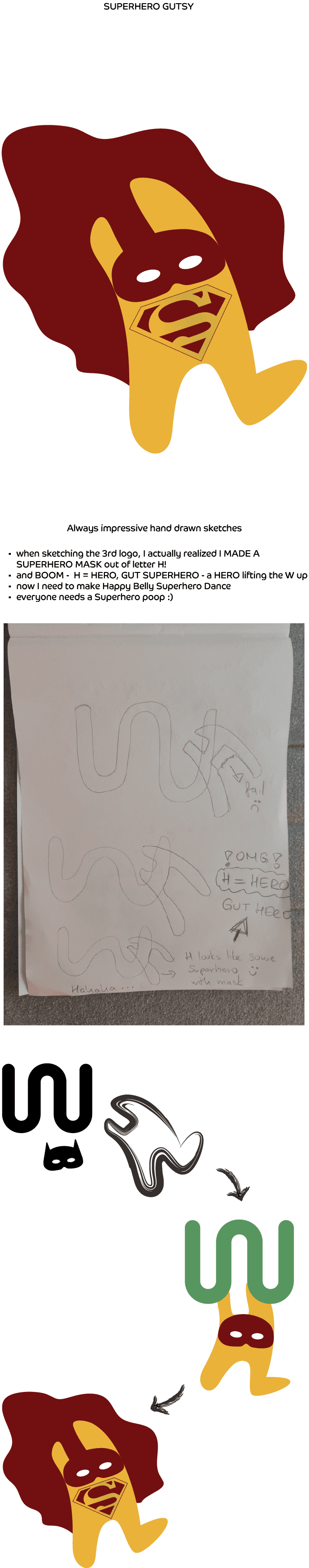 While sketching one of the many logo designs, I drew a superhero mask on the letter "H." And just like that - "H" became a Hero, a Gut Hero - giving birth to the mascot "Gutsy"